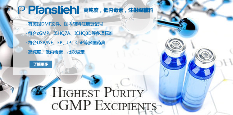 “熱烈祝賀Pfanstiehl的注射級甘氨酸Glycine(G-140)喜獲CDE登記號F20250000403, 這是Pfanstiehl產品獲得的第18個CDE登記號!”甘氨酸在醫藥輔料制劑中應用廣泛,, 可作為緩沖劑,增溶劑,穩定劑等,具有諸多優勢。Pfanstiehl秉承一貫高品質理念,為滿足全球生物制藥行業對于高品質甘氨酸的需求,隆重推出的注射級甘氨酸Glycine (G-140), 具有超高純度,超低內毒素,超低金屬殘留的特點,單獨檢測29種金屬離子,并且新增DNA,RNA,DNA酶,RNA酶和脂肪酶,亞硝酸鹽等多項質量指標的檢測,符合多國藥典規定(USP, EP, BP, JPE, ChP),可用于生物治療性藥物和疫苗的生產。產品信息:· 產品名稱:Glycine, High Purity, Low Endotoxin, Low Metals, USP, EP, BP, JPE, ChP (G-140)· 中文名稱:甘氨酸· 分子式:C2H5NO2· 分子量:75.07 g / mol· CAS號:56-40-6· 產品貨號:G-140產品特點: · 超高純度,超低內毒素,超低微生物含量,超低金屬雜質殘留· 質量指標新增DNA,RNA,DNA酶,RNA酶,脂肪酶和亞硝酸鹽檢測· 符合多國藥典:USP, EP, BP, JPE, ChP· 符合ICH Q3D標準· 符合GMP標準· 已獲DMF和CDE登記號 產品應用:· 緩沖劑· 穩定劑· 增溶劑如果您對Pfanstiehl注射級別Glycine G-140感興趣,歡迎聯系Pfanstiehl 中國區代理商北京西美杰科技有限公司獲得如下詳細的產品概況說明文件和測試樣品。Pfanstiehl Inc.最新產品系列如下,歡迎聯系北京西美杰科技有限公司獲取100g裝免費樣品。北京西美杰科技有限公司為Pfanstiehl中國代理,為客戶提供完善的技術支持與售后服務。歡迎撥打西美杰客服電話400-050-4006或者登陸網站www_xmjsci_com.czzalk88.cn了解更多信息。 更多>
